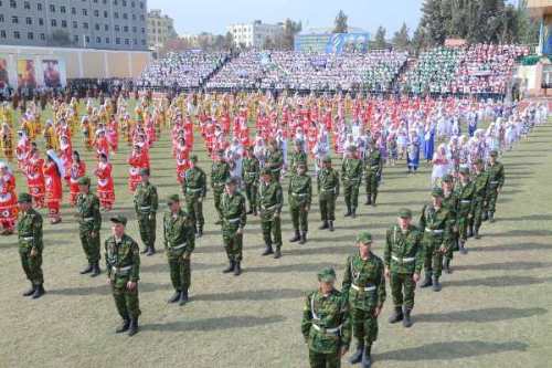 Ҷавонон бо рӯҳияи баланд ва парчамҳои давлатӣ дар даст аз комиссариати ҳарбии вилоят то варзишгоҳи Донишгоҳи давлатии Бохтар ба номи Носири Хусрав роҳпаймоӣ карданд.